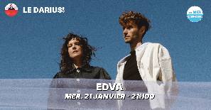Edva veut dire EdouardetValentina. Russes déracinés à Paris, duo ni couple ni frère et sœur, ils traversent en trois langues et en toute liberté les plaines de la pop, de la trip-hop, de l’électro avec une voix précisément perchée. Avec Edva, on ne touche plus terre. Leur musique pacifiste soulève des paysages cinématiques créés par Ed, compositeur pour l’image lorsqu’il vivait en Russie. La voix-lumière de Tina, ancienne chanteuse du groupe moscovite indie pop Tinavie, souffle le souvenir international de Björk, The Dø et Kate Bush réunies.Terre à terre, les chansons de Edva donnent vie en anglais, en français ou en russe à des réalités universelles : tomber amoureux, avoir un enfant, lire dans le ciel, vouloir la paix… Après les singles « Ciel », « Veter » et « Son », le duo dévoile son 1er EP « Bombe d’amour » et son single éponyme le 14 novembre 2025 chez Delco music.